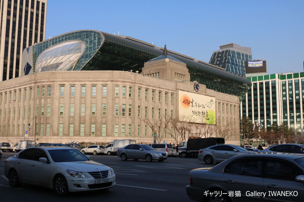 さらに南下すると、ソウル市庁舎。奥の流線形の建物が新庁舎です。